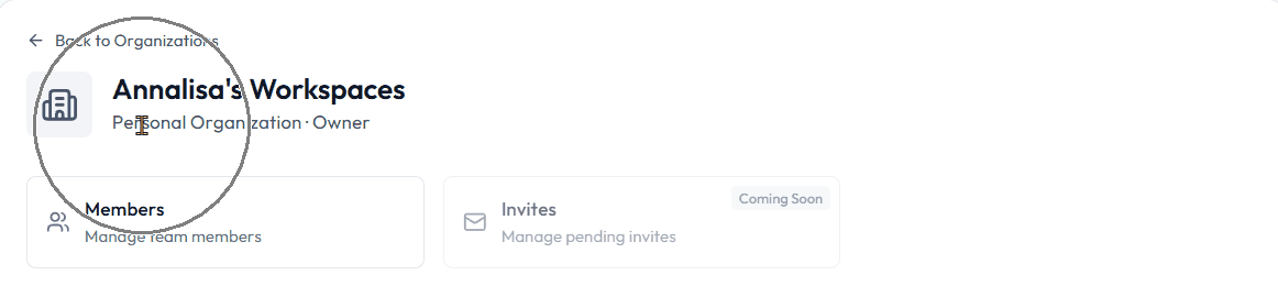 The Members section displays your Organization details, including: