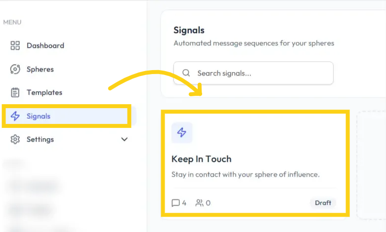 Head over to "Signals" on the left sidebar and click on the "Keep in Touch" tile 👈