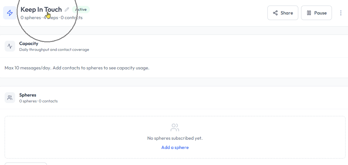 📋 Select the Sphere(s) you want to connect to the “Keep in Touch” Signal