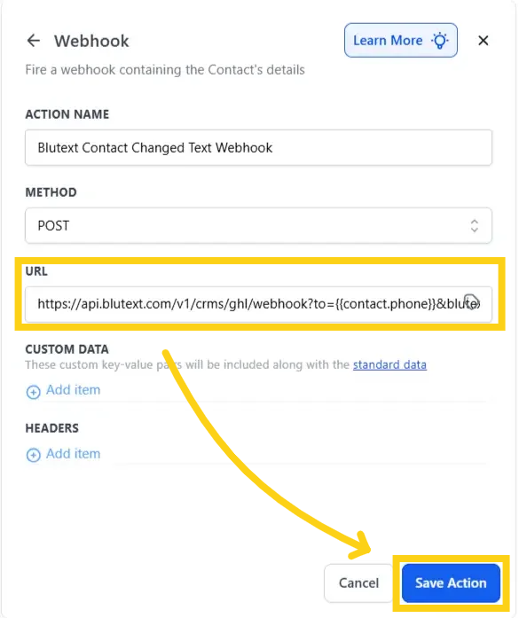This article will walk you through how to create a High Level Webhook for Blutext.