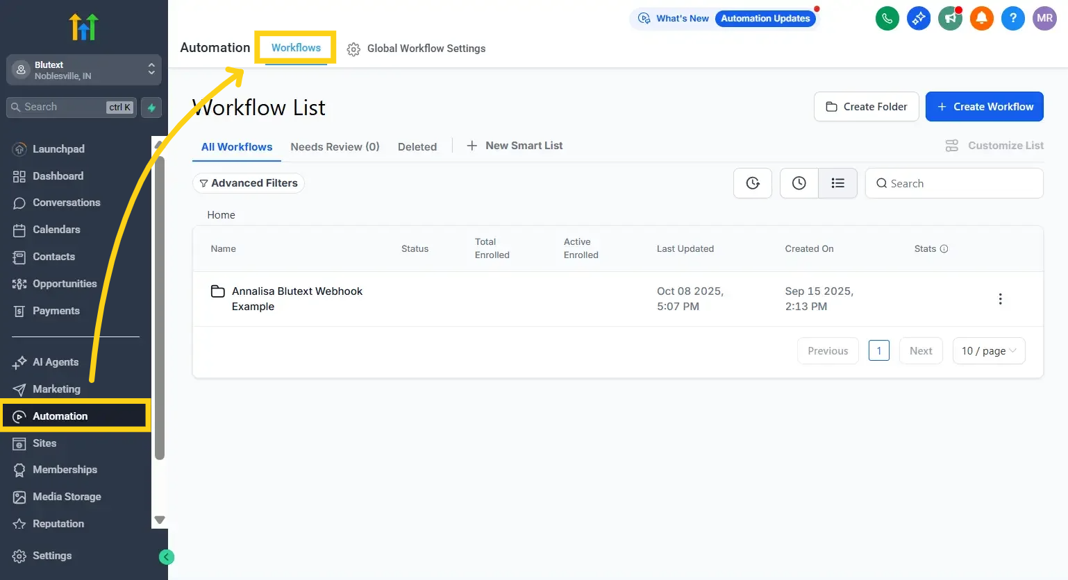 This article will guide you in creating the "easy-button" High Level Workflows using Blutext webhook integrations. You will learn to quickly set up a High Level Webhook for the Blutext messages you want to send, add it to High Level Workflows, track your created Webhooks, and customize them on the fly.